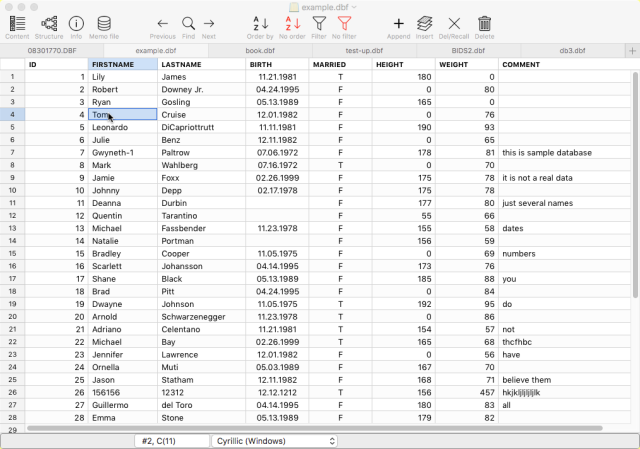 CDBF supports dBase III, dBase IV, FoxPro, Visual FoxPro, SMT formats.